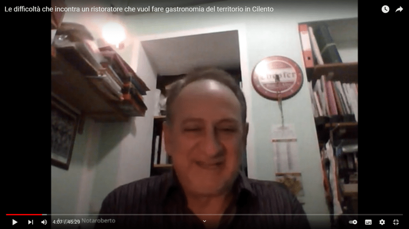 Augusto Notaroberto, titolare dell’Osteria del Notaro di Ceraso, ragiona su tutte le difficoltà che deve superare chi vuole fare una gastronomia di territorio in Cilento. Augusto propone di mettere in piedi un workshop che consenta un confronto costruttivo tra produttori e ristoratori del Cilento per conoscersi, assaggiare e valutare prodotti e piatti, e soprattutto costruire un percorso di perfezionamento e di apprendimento reciproco che coinvolga tutti e crei un senso di comunità.