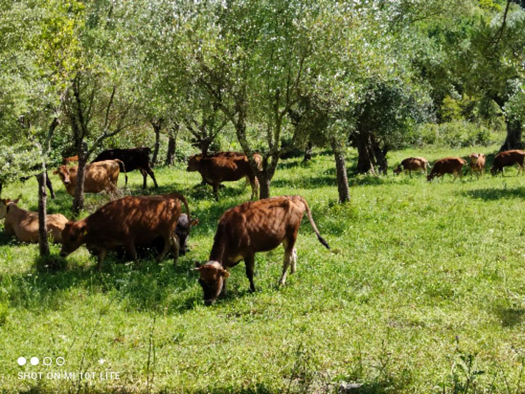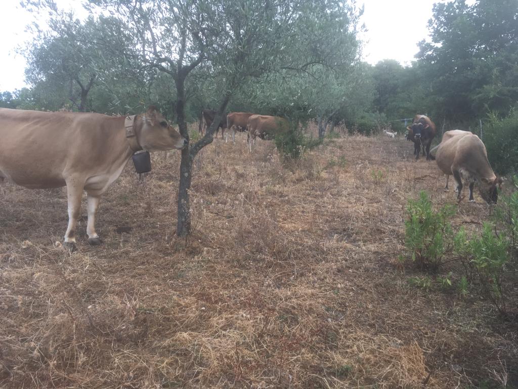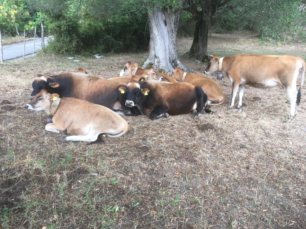 Per quanto riguarda le bovine abbiamo solo razza jersey. Però, vanno al pascolo. Abbiamo scelto la jersey un po’ per passione per il tipo di animale, un po’ perché è un animale molto piccolo si adatta ai nostri terreni scoscesi e poi per la scelta del loro latte per fare dei prodotti che ci consentano di diversificarci sul mercato.