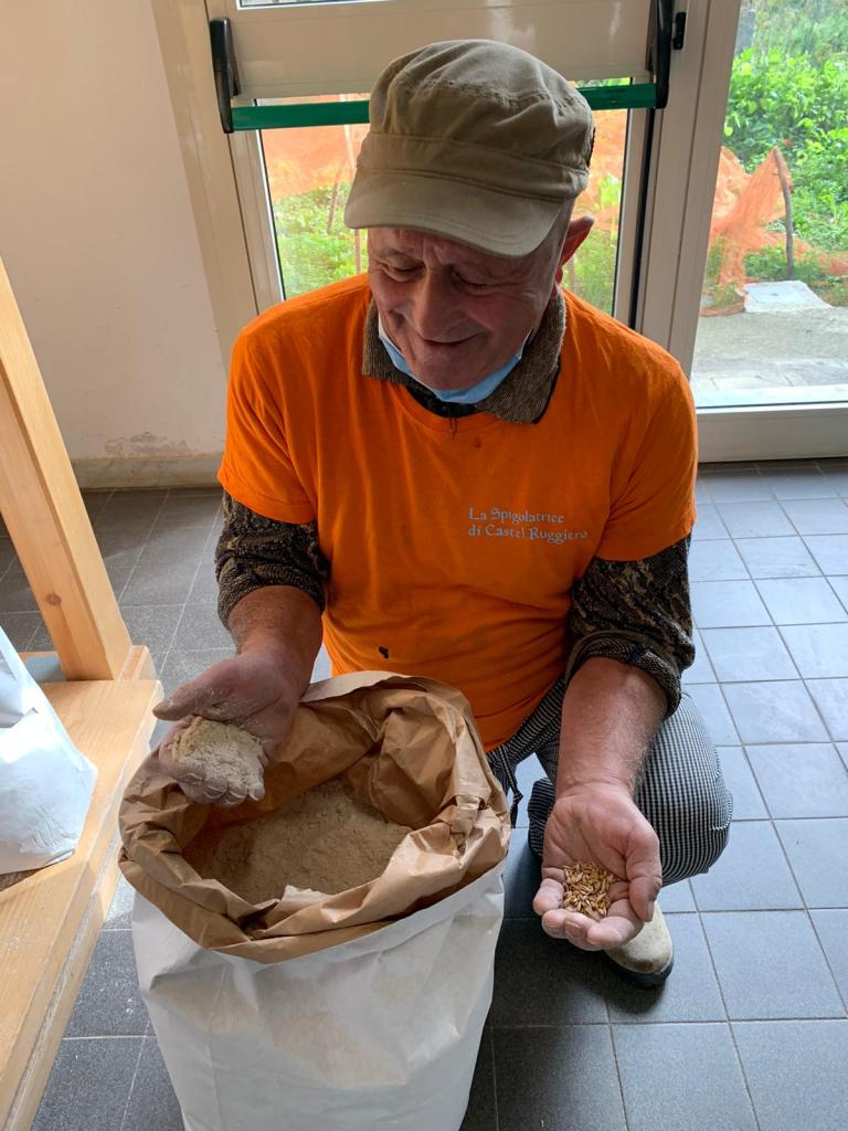 Per fare un ottimo prodotto devi capire la terra, devi sapere quando la devi arare, quando devi seminare, quando devi mietere il grano e gli altri cereali, e come li devi macinare. Il Cilento era la culla dei cereali. Nel 1965-1970 è arrivata dall’America una varietà di grano chiamata Abbondanza e noi contadini abbiamo tolto tutti i cereali locali perché il grano Abbondanza, come dice la parola, produceva di più. Abbiamo tolto questi nostri cereali che erano la carosella, la russia bianca, la russia rossa, il mazzoccolo, il germano, la segale, il senatore cappelli, il saragolla, il siciliano e il cicirieddo. Poi, quando ci siamo accorti che questi grani avevano un valore, abbiamo incominciato a cercarli e li abbiamo ritrovati. Solo due ancora non sono stati recuperati. Io credo di averne trovato uno, il cicirieddo che è un grano duro, uno dei migliori grani, mentre il siciliano, è un altro grano duro.