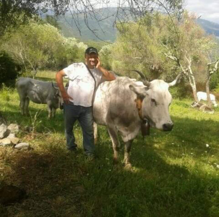 Gerardo Petrillo (GP): Mio papà e mia mamma avevano soltanto i buoi podolici per arare la terra. Mio padre non ha avuto mucche, però aveva delle capre e pecore insieme. Questo insieme a mia madre e alle mie 5 sorelle più grandi. Loro lavoravano diverso, poi quando sono cresciuto, mano mano che crescevo, mi sono piaciute sempre le mucche sin da quando ero piccolo. A 3 anni pascolavo i buoi e il paio di mucche che mio padre aveva preso. A 3 anni già stavo sempre dietro le mucche. Mio padre mi diceva di far pascolare le capre e le pecore, ma io gli dicevo che non mi piacevano. Stavo sempre con le mucche. Quando ho fatto 18-20 anni ho incominciato ad incrementare le mucche e l’allevamento l’ho creato tutto da solo. Ho avuto fino a 130 mucche. Poi. Il numero è sceso e risalito perché il mercato della carne una volta va meglio e una volta va male. Ha i suoi alti e i suoi bassi. Però, quello dell’allevamento delle mucche nella mia famiglia è un lavoro che ho creato io.