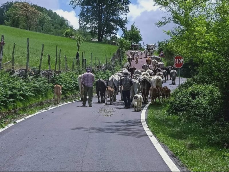 GP: La mia transumanza, quando la faccio, a parte che è bella proprio, le mucche sono tante e hanno dei campanacci. Poi, sono mucche addestrate sulle strade. Occupano metà strada, non occupano tutta la strada. Metà loro e metà libera.