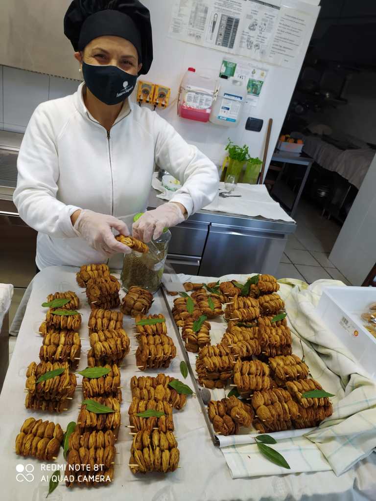 Nel mio lavoro, la compattezza familiare, il sostegno della famiglia, l’unità della famiglia è fondamentale. In questo momento, sono sette di noi che lavorano qua dentro. C’è la mia mamma, c’è mio papà, ci sono i miei figli che ho avviato al lavoro. C’è la soddisfazione di avere un lavoro che copre tutto l’anno tra ristorazione e produzione, ma allo stesso tempo dietro c’è un sacco di lavoro e lo posso fare anche grazie al sostegno dell’intera famiglia. C’è una disponibilità immediata, diretta, comprensione di degli obiettivi da realizzare, ma allo stesso modo di un gruppo di collaboratori/dipendenti che sposano il mio stesso principio di lavoro e quindi un grazie anche a loro se posso realizzare tutto questo perché se sono partita all’inizio io, mamma e mia zia, adesso arriviamo ad essere anche in 10, a seconda dei periodi. Tutto questo lo puoi fare grazie a un lavoro di squadra che sposa le tue stesse idee.