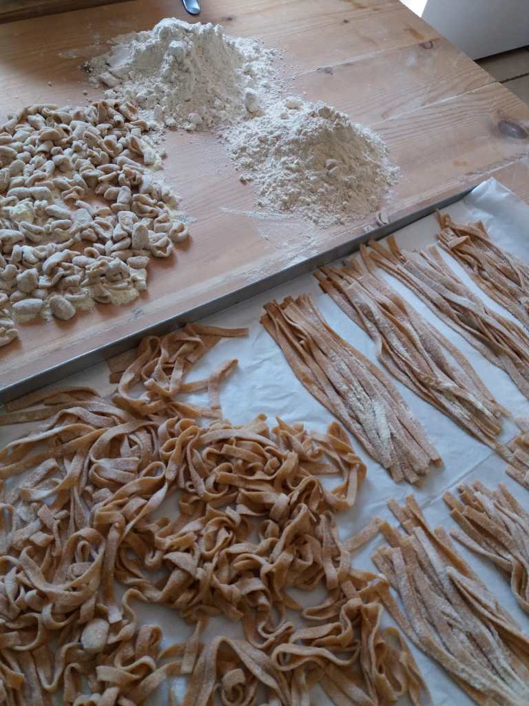 Ora, io faccio anche una cucina per celiaci, una cucina senza glutine. Preparo la pasta fresca senza glutine e per le farine al momento attingo al molino di Terra di Resilienza di Caselle in Pittari, anche a Piaggine dalla Spiga del Cervati, poi l’anno scorso abbiamo anche provato il grano nostro. Usiamo anche le farine de I Moresani e dell’azienda agricola La Petrosa. Da tre anni stiamo cercando di inserire almeno un formato di pasta fresca prodotta con la farina del Cilento, la saragolla e il Senatore Cappelli.